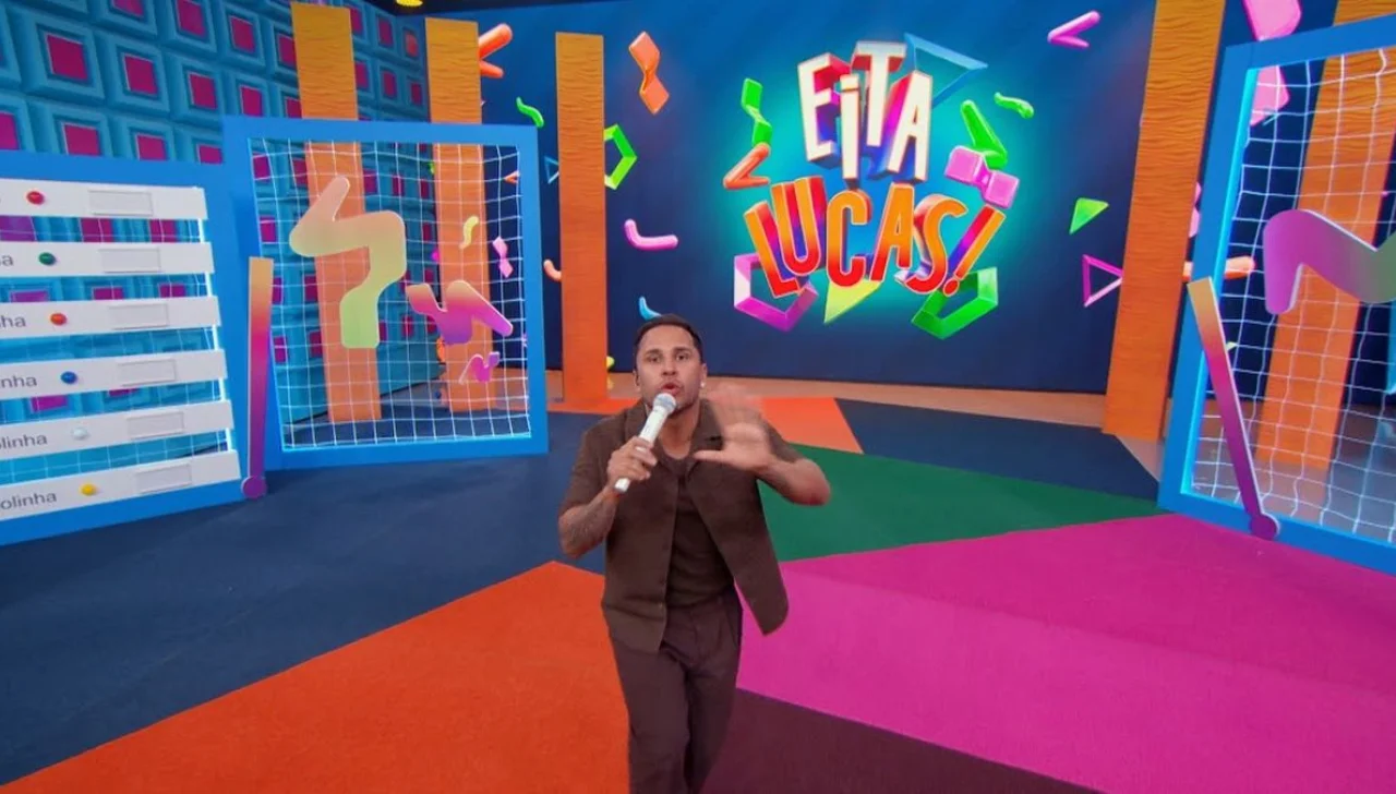 O Eita, Lucas! inaugura neste sábado (04) uma etapa inédita na programação do SBT: depois de oito meses rodando o país só em externas, o programa comandado por Lucas Guimarães passa a dividir a atração entre rua e palco, com formato de estúdio, plateia de 120 pessoas, games ao vivo e interação direta com o público — sem abrir mão dos quadros que fizeram sucesso nas gravações pelo Brasil. A edição vai ao ar às 15h.