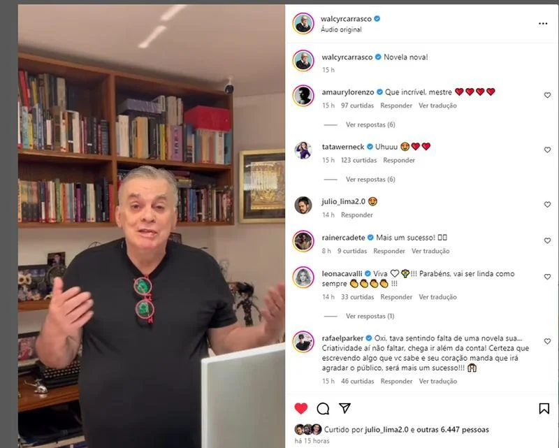 Walcyr Carrasco anunciou em suas redes sociais que começou a escrever os capítulos de sua próxima novela, embora tenha mantido os detalhes em segredo. "Estou aqui no meu escritório em um dia de muita felicidade, porque já estou escrevendo a minha nova novela. Torçam para a minha imaginação, e que eu tenha muitas novidades e histórias para contar", compartilhou o dramaturgo de forma bem-humorada.